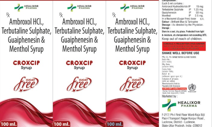 Composition: Ambroxol HCI., Terbutaline Sulphate, Guaiphenesin & Menthol Syrup
